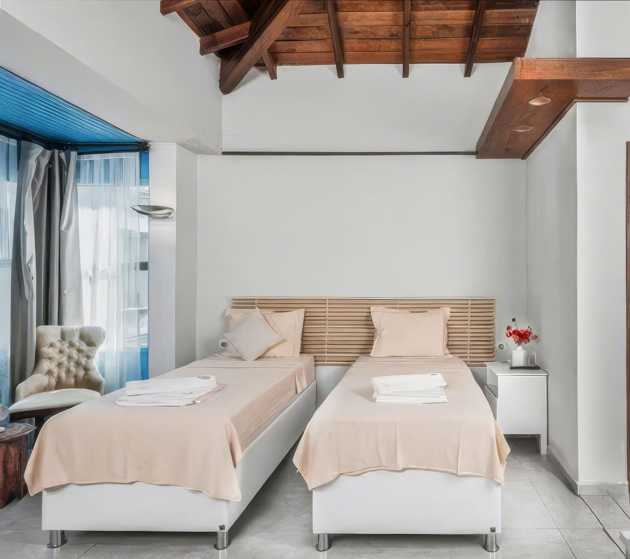 Deluxe Oda, Alaçatı’da daha geniş ve ferah bir konaklama arayan misafirler için tasarlanmıştır. Konforu ön planda tutan oda düzeni, sakin bir atmosfer ve rahat bir kullanım sunar. Uzun süreli konaklamalar için de uygundur.